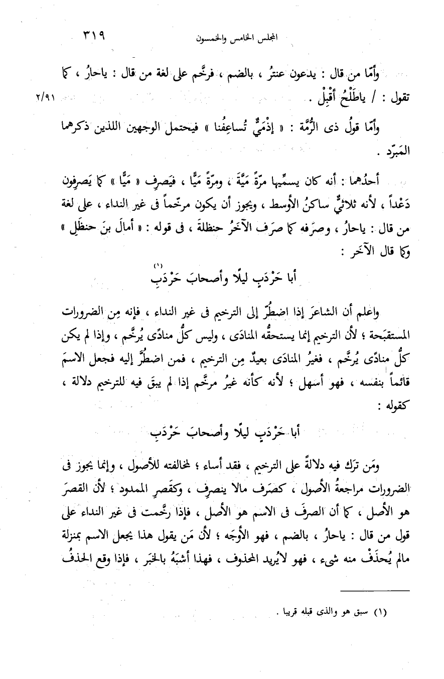 وأمّا قول ذى الرّمّة: «إذ ميّ تساعفنا» فيحتمل الوجهين اللذين ذكرهما المبرّد.