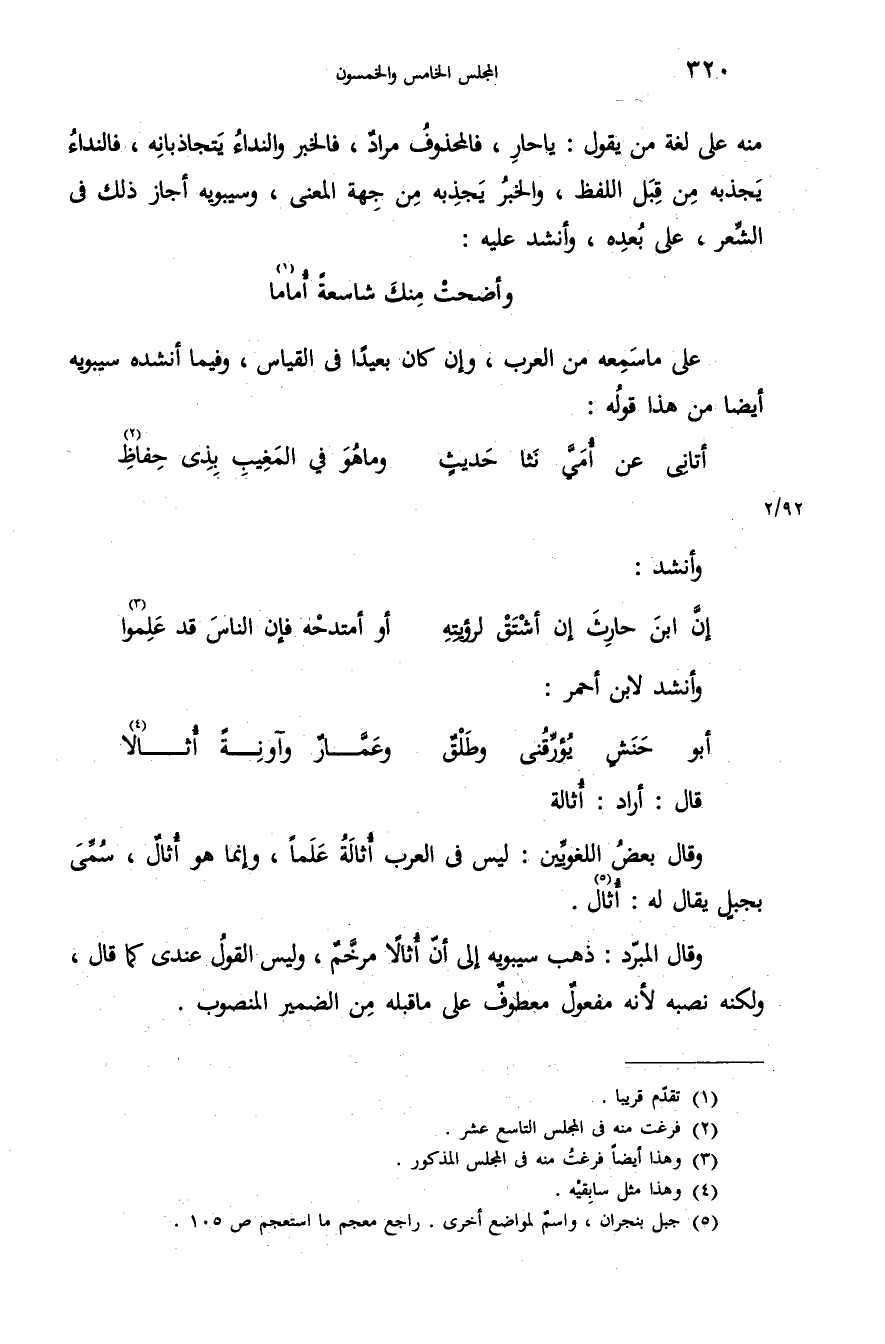 وقال المبرّد: ذهب سيبويه إلى أنّ أثالا مرخّم، وليس القول عندى كما قال، ولكنه نصبه لأنه مفعول معطوف على ما قبله من الضمير المنصوب.