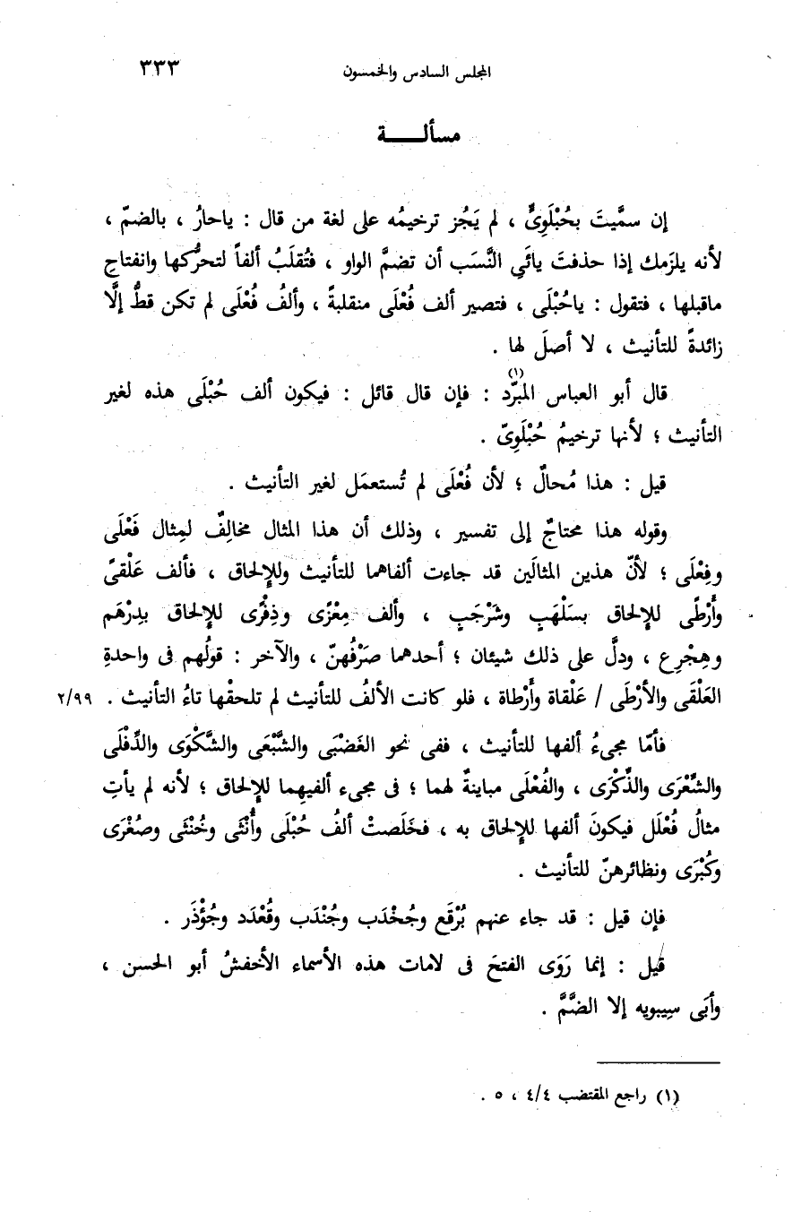 قال: أبو العباس المبرّد (¬1): فإن قال قائل: فيكون ألف حبلى هذه لغير التأنيث؛ لأنها ترخيم حبلويّ.