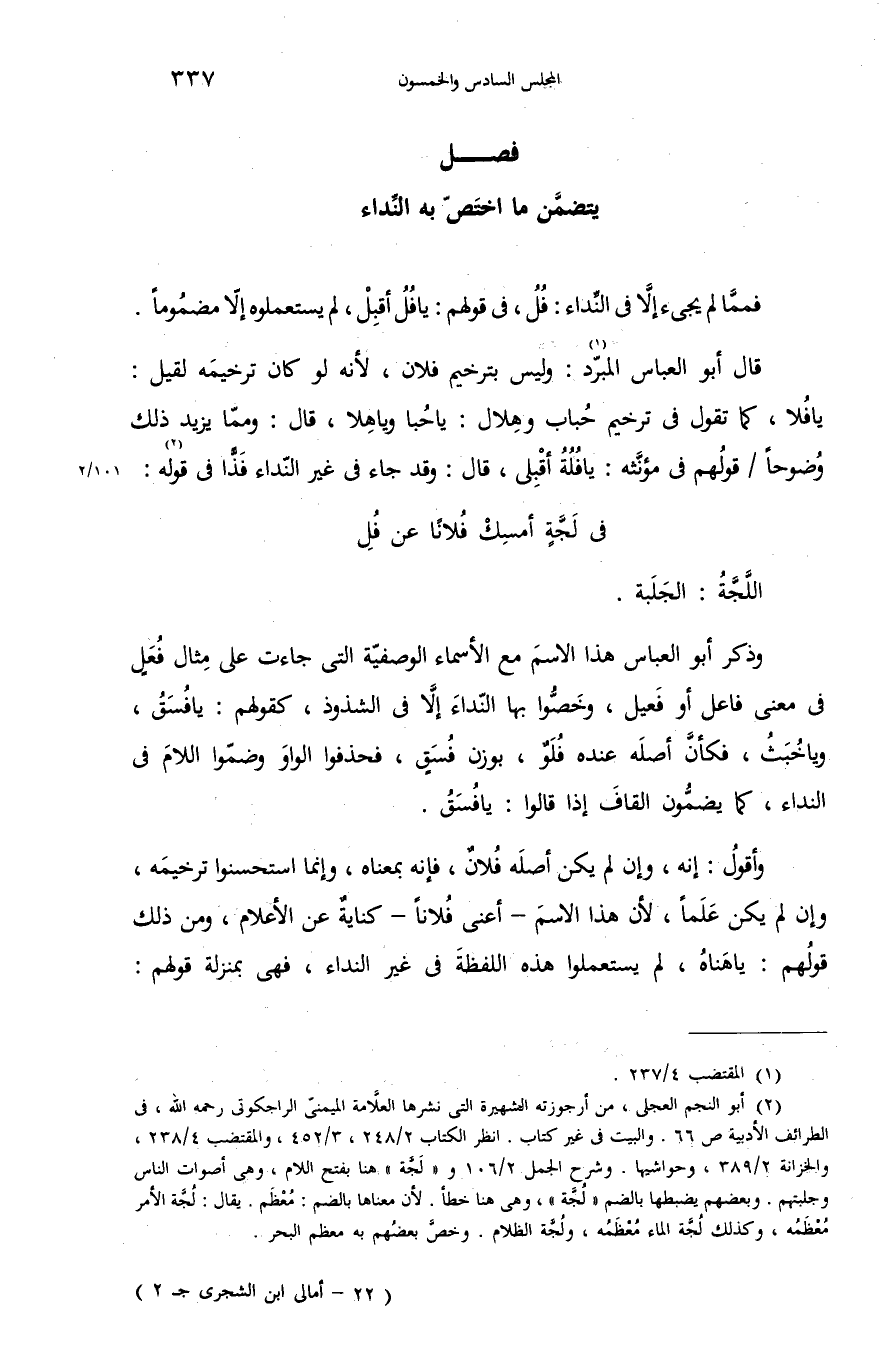 (¬2) أبو النجم العجلى، من أرجوزته الشهيرة التى نشرها العلاّمة الميمنىّ الراجكوتى رحمه الله، فى الطرائف الأدبية ص 66. والبيت فى غير كتاب. انظر الكتاب 2/ 248،3/ 452، والمقتضب 4/ 238، والخزانة 2/ 389، وحواشيها. وشرح الجمل 2/ 106 و «لجّة» هنا بفتح اللام، وهى أصوات الناس وجلبتهم. وبعضهم يضبطها بالضم «لجّة»، وهى هنا خطأ. لأن معناها بالضم: معظم. يقال: لجّة الأمر معظمه، وكذلك لجّة الماء معظمه، ولجّة الظلام. وخصّ بعضهم به معظم البحر.