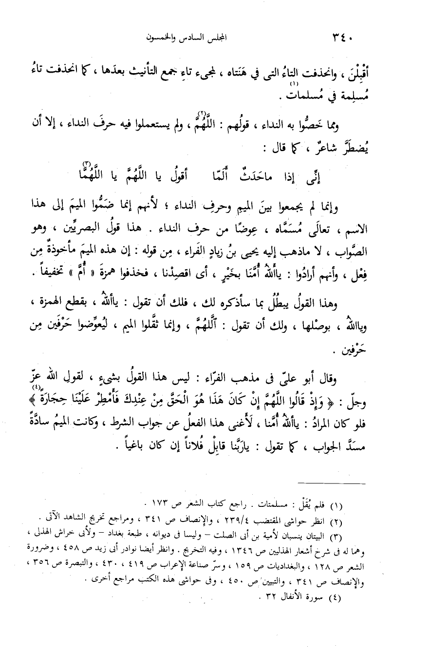 (¬2) انظر حواشى المقتضب 4/ 239، والإنصاف ص 341، ومراجع تخريج الشاهد الآتى.