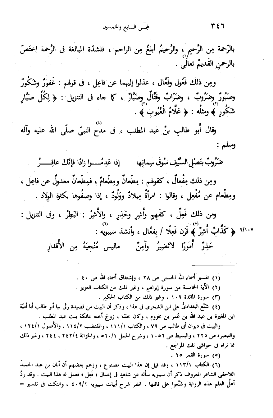 (¬4) شنّع البغدادىّ على ابن الشجرى فى هذا، وذكر أن البيت من قصيدة رثى بها أبو طالب أبا أميّة ابن المغيرة بن عبد الله بن عمر بن مخزوم، وكان ختنه، زوج أخته عاتكة بنت عبد المطلب. والبيت فى ديوان أبى طالب ص 79، والكتاب 1/ 111، والمقتضب 2/ 114، والأصول 1/ 124، والتبصرة ص 225، والبسيط ص 1056، وشرح الجمل 1/ 560، والخزانة 4/ 242،244، وغير ذلك مما تراه فى حواشى تلك المراجع.