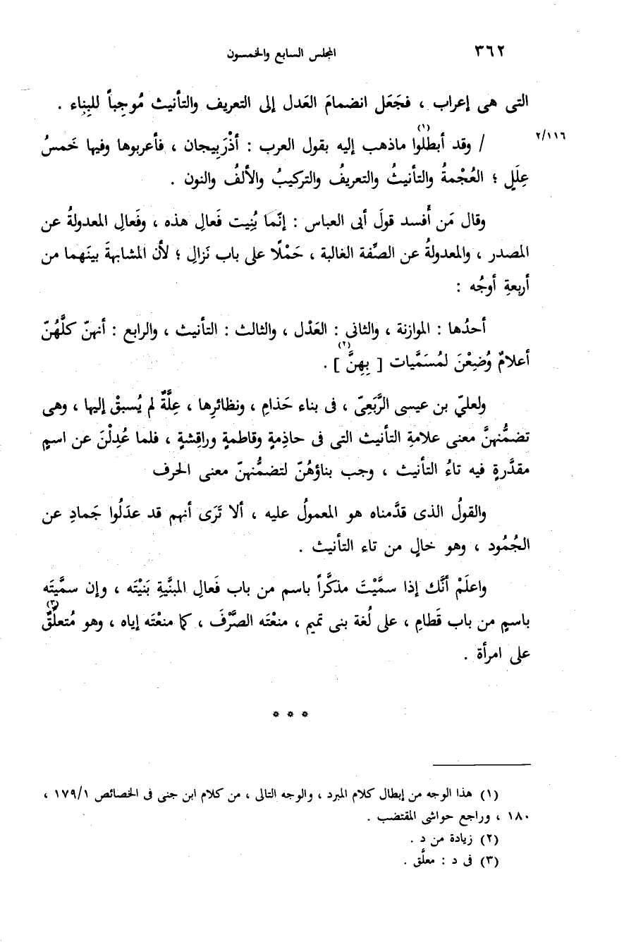 (¬1) هذا الوجه من إبطال كلام المبرد، والوجه التالى، من كلام ابن جنى فى الخصائص 1/ 179، 180، وراجع حواشى المقتضب.