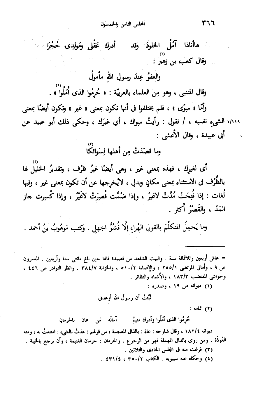 = عاش أربعين وثلاثمائة سنة. والبيت الشاهد من قصيدة قالها حين بلغ مائتى سنة وأربعين. المعمرون ص 9، وأمالى المرتضى 1/ 255، والإصابة 2/ 510، والخزانة 7/ 384. وانظر النوادر ص 446، وحواشى المقتضب 3/ 183، والأشباه والنظائر.