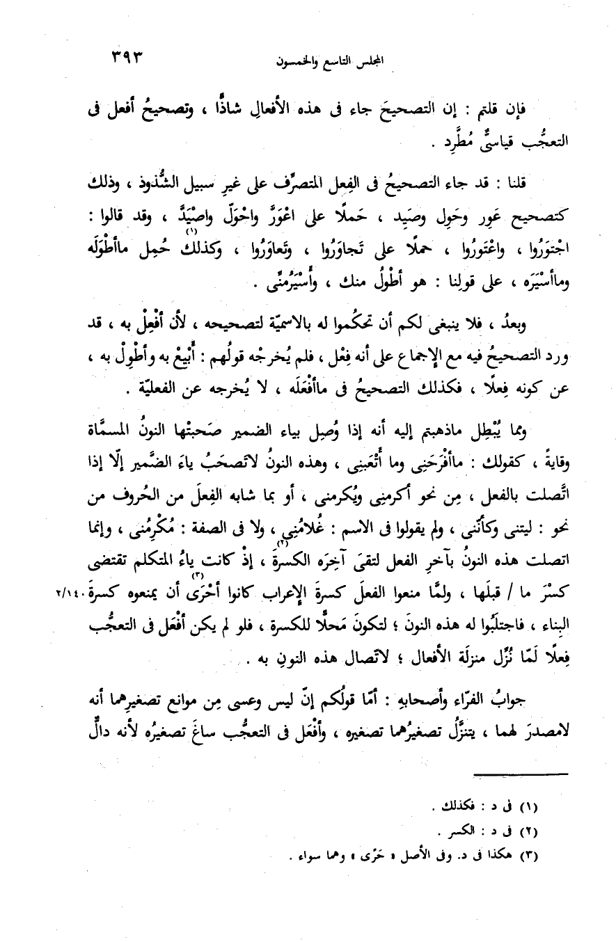 وبعد، فلا ينبغى لكم أن تحكموا له بالاسميّة لتصحيحه، لأن أفعل به، قد ورد التصحيح فيه مع الإجماع على أنه فعل، فلم يخرجه قولهم: أبيع به وأطول به، عن كونه فعلا، فكذلك التصحيح فى ما أفعله، لا يخرجه عن الفعليّة.