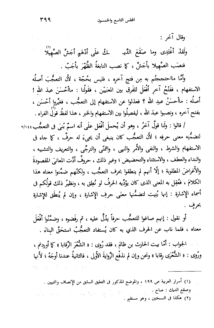 (¬1) أسرار العربية ص 199، والموضع المذكور فى التعليق السابق من الإنصاف والتبيين. وصقع الديك: صاح.