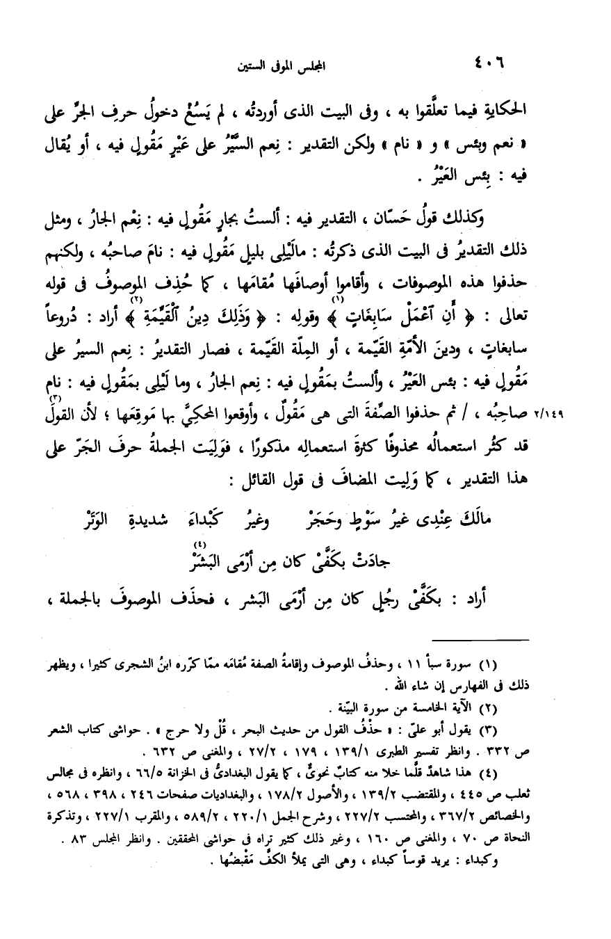 (¬1) سورة سبأ 11، وحذف الموصوف وإقامة الصفة مقامه ممّا كرّره ابن الشجرى كثيرا، ويظهر ذلك فى الفهارس إن شاء الله.