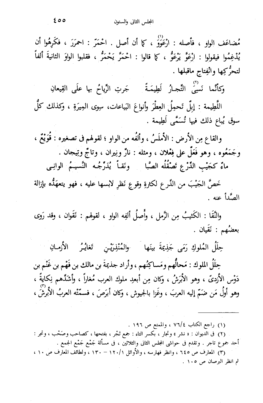 (¬2) فى الديوان: «نشر» وتجار، بكسر التاء: جمع تجر، بفتحها، كصاحب وصحب، وتجر: أحد جموع تاجر. وتقدم فى حواشى المجلس الثانى والثلاثين، فى مسألة جمع جمع الجمع.