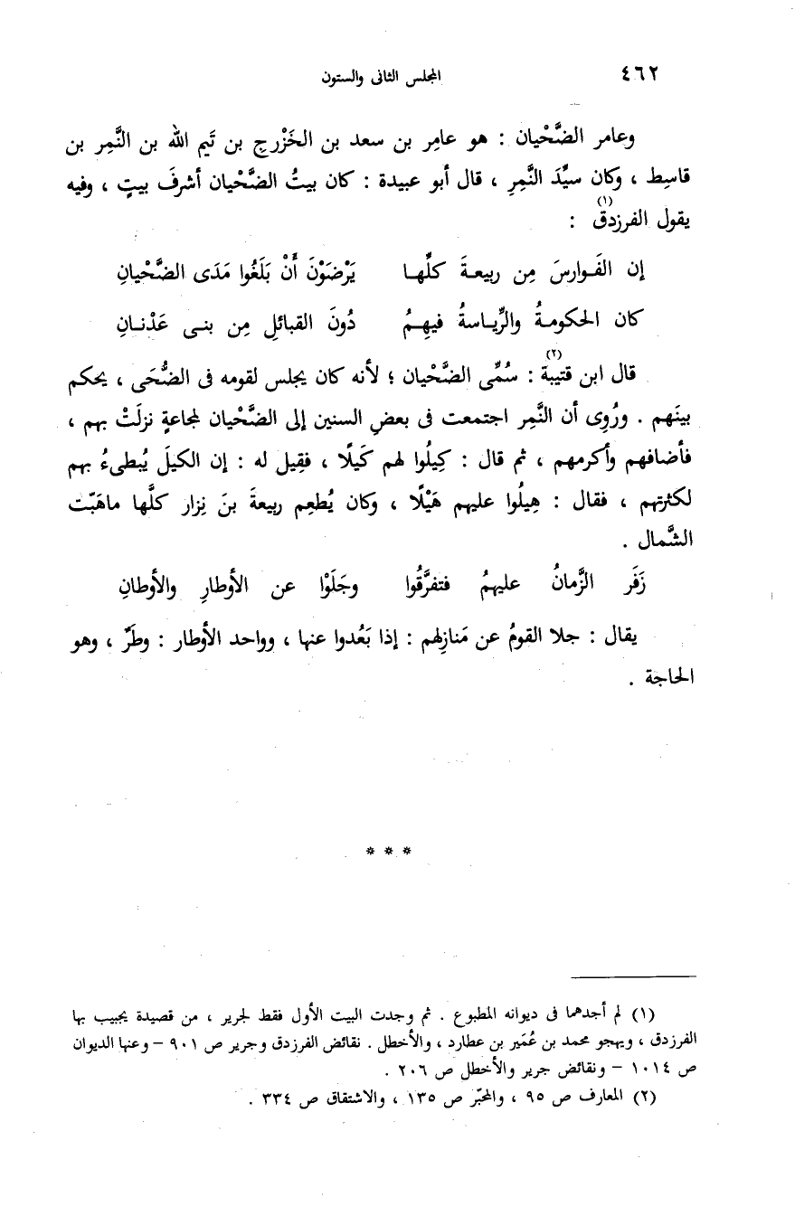 وعامر الضّحيان: هو عامر بن سعد بن الخزرج بن تيم الله بن النّمر بن قاسط، وكان سيّد النّمر، قال أبو عبيدة: كان بيت الضّحيان أشرف بيت، وفيه يقول الفرزدق (¬1):