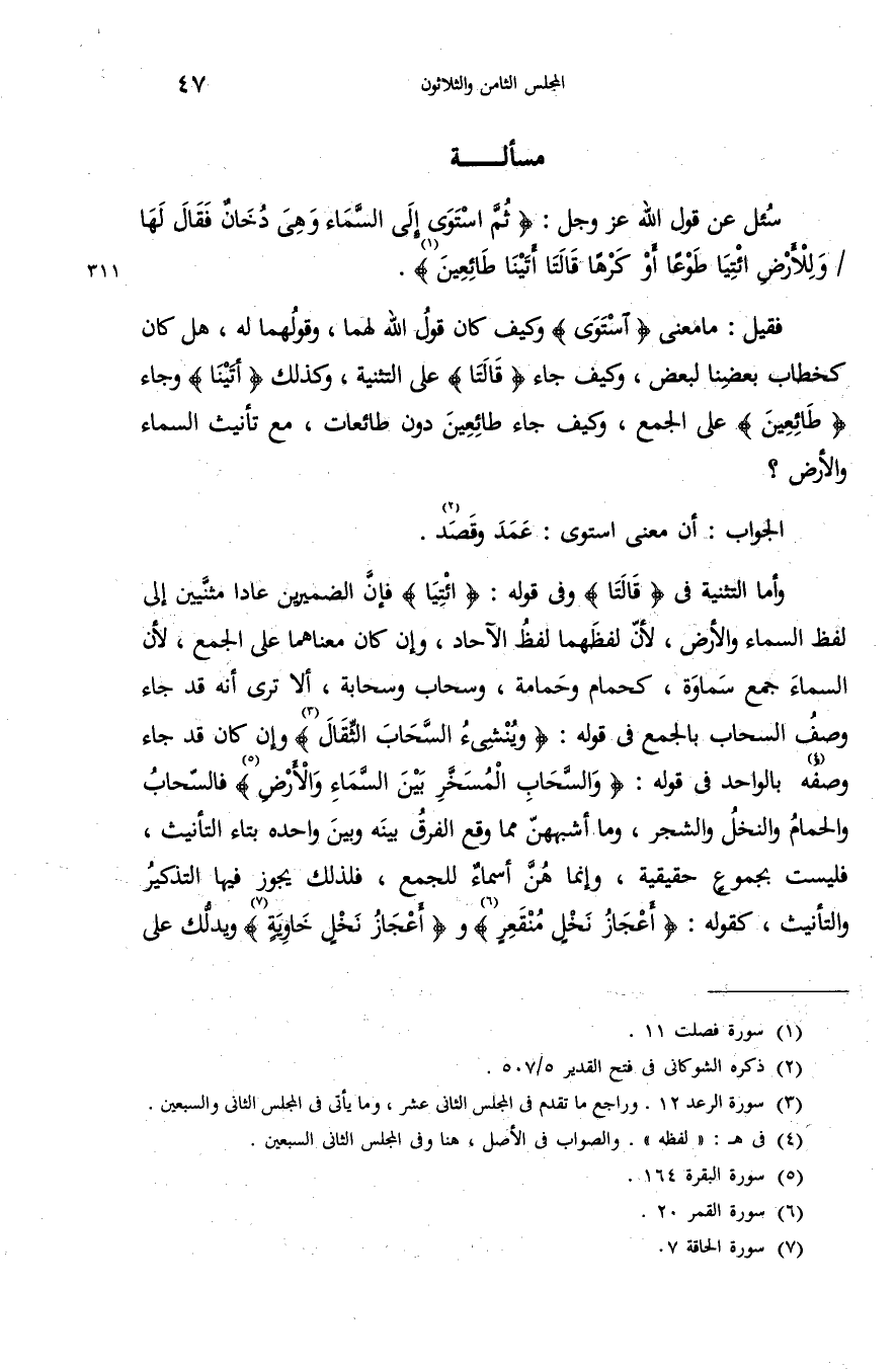 (¬3) سورة الرعد 12. وراجع ما تقدم فى المجلس الثانى عشر، وما يأتى فى المجلس الثانى والسبعين.