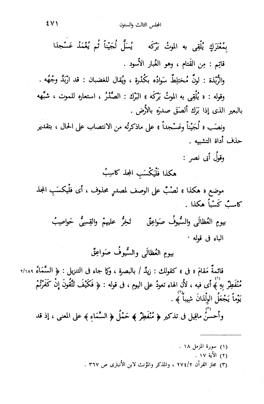 وأحسن (¬3) ما قيل فى تذكير {مُنْفَطِرٌ} حمل {السَّماءُ} على المعنى، إذ قد