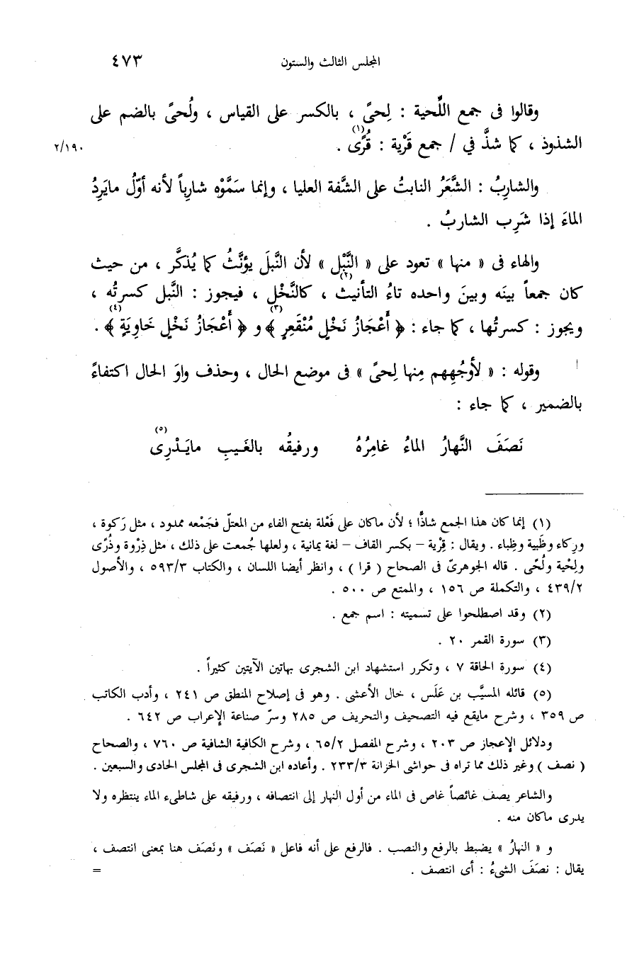 والهاء فى «منها» تعود على «النّبل» لأن النّبل يؤنّث كما يذكّر، من حيث كان جمعا بينه وبين واحده تاء التأنيث (¬2)، كالنّخل، فيجوز: النّبل كسرته، ويجوز: كسرتها، كما جاء: {أَعْجازُ نَخْلٍ مُنْقَعِرٍ} (¬3) و {أَعْجازُ نَخْلٍ خاوِيَةٍ} (¬4).