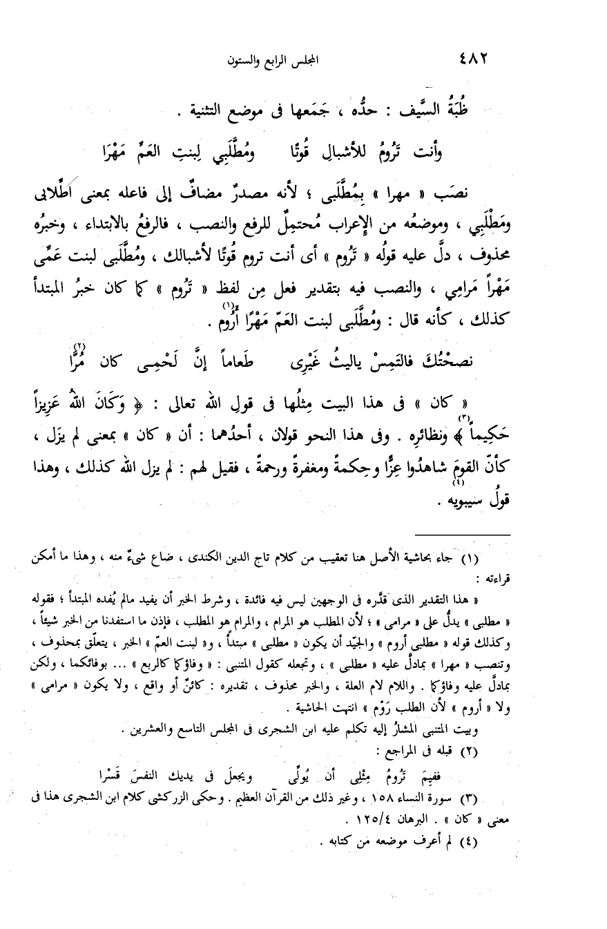 (¬3) سورة النساء 158، وغير ذلك من القرآن العظيم. وحكى الزركشى كلام ابن الشجرى هذا فى معنى «كان». البرهان 4/ 125.