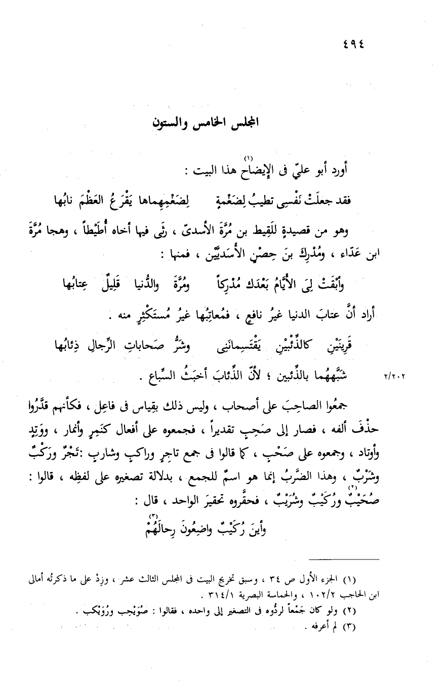 (¬1) الجزء الأول ص 34، وسبق تخريج البيت فى المجلس الثالث عشر، وزد على ما ذكرته أمالى ابن الحاجب 2/ 102، والحماسة البصرية 1/ 314.