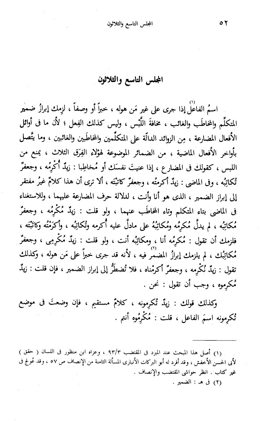 (¬1) أصل هذا المبحث عند المبرد فى المقتضب 3/ 93، وعزاه ابن منظور فى اللسان (حقق) لأبى الحسن الأخفش، وقد أفرد له أبو البركات الأنبارى المسألة الثامنة من الإنصاف ص 57، وقد عولج فى غير كتاب. انظر حواشى المقتضب والإنصاف.