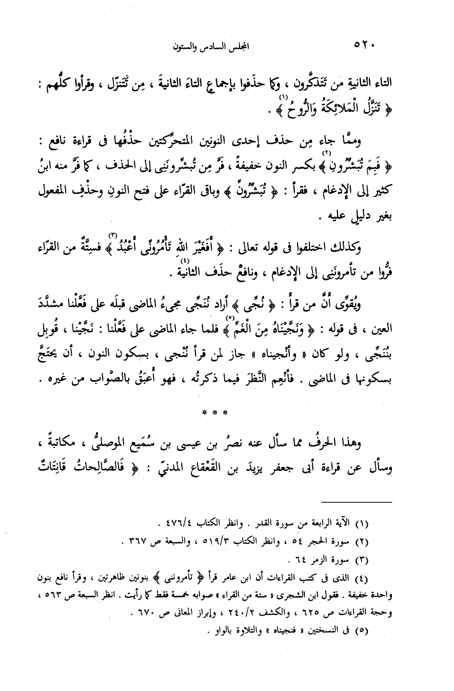 (¬2) سورة الحجر 54، وانظر الكتاب 3/ 519، والسبعة ص 367.