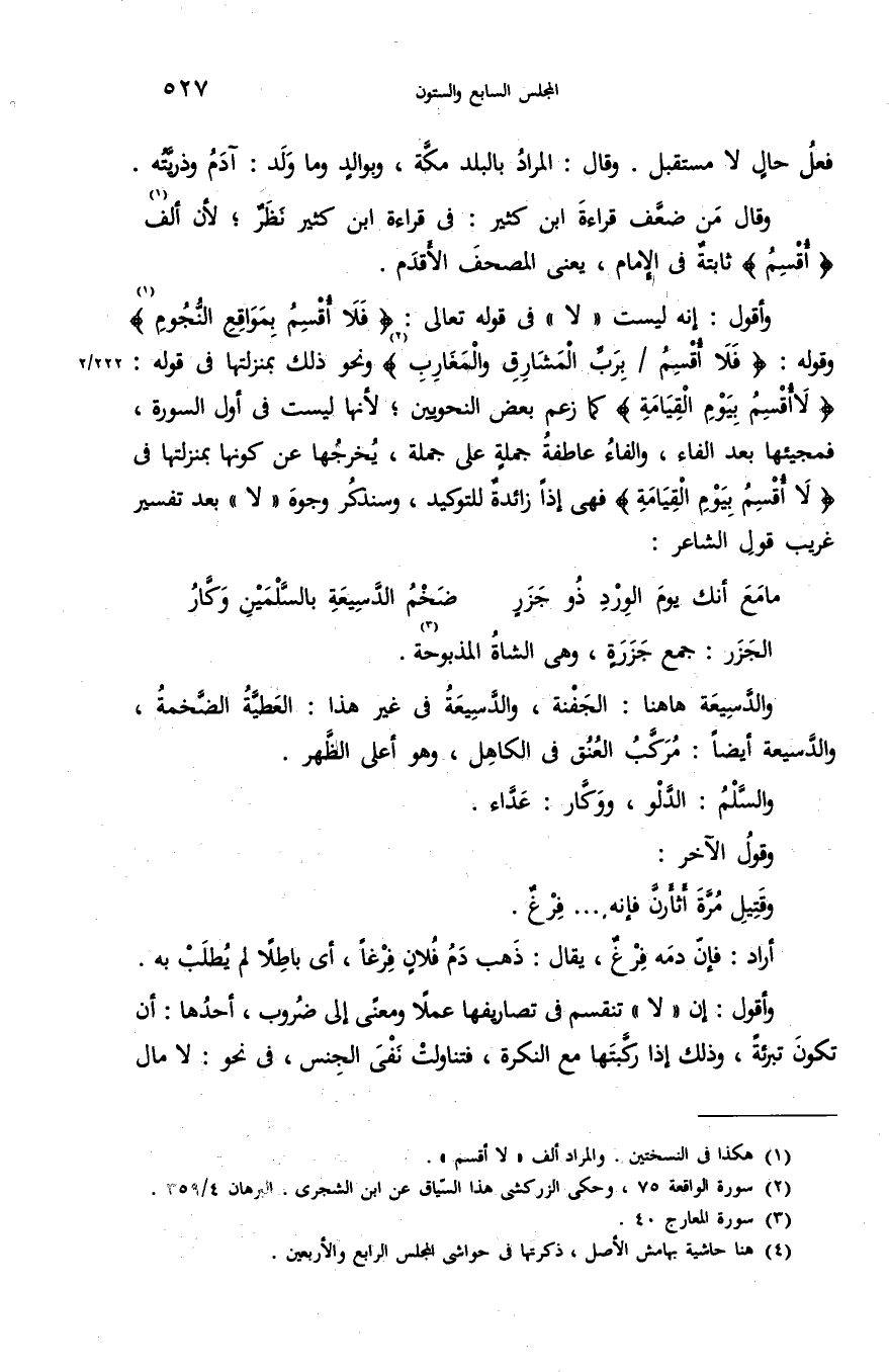 (¬2) سورة الواقعة 75، وحكى الزركشى هذا السّياق عن ابن الشجرى. البرهان 4/ 159.