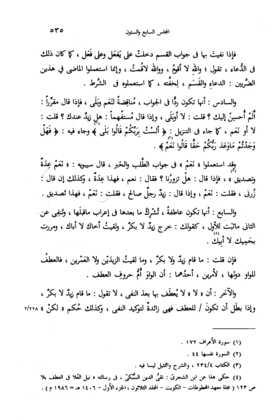 (¬4) حكى هذا عن ابن الشجرىّ: تقىّ الدين السّبكىّ، فى رسالته «نيل العلا فى العطف بلا ص 123 (مجلة معهد المخطوطات-الكويت-المجلد الثلاثون، الجزء الأول-1406 هـ-1986 م).