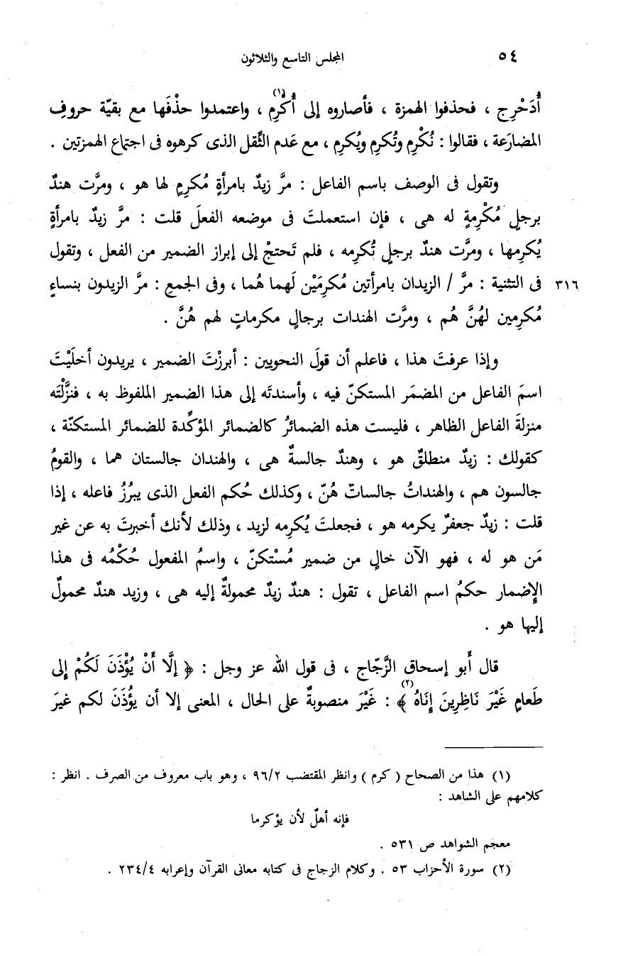 (¬2) سورة الأحزاب 53. وكلام الزجاج فى كتابه معانى القرآن وإعرابه 4/ 234.
