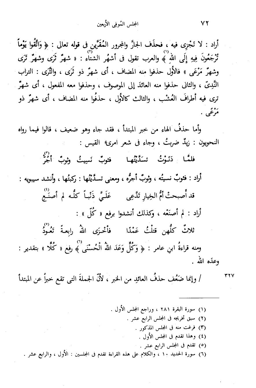 (¬6) سورة الحديد 10، والكلام على هذه القراءة تقدم فى المجلسين: الأول، والرابع عشر.