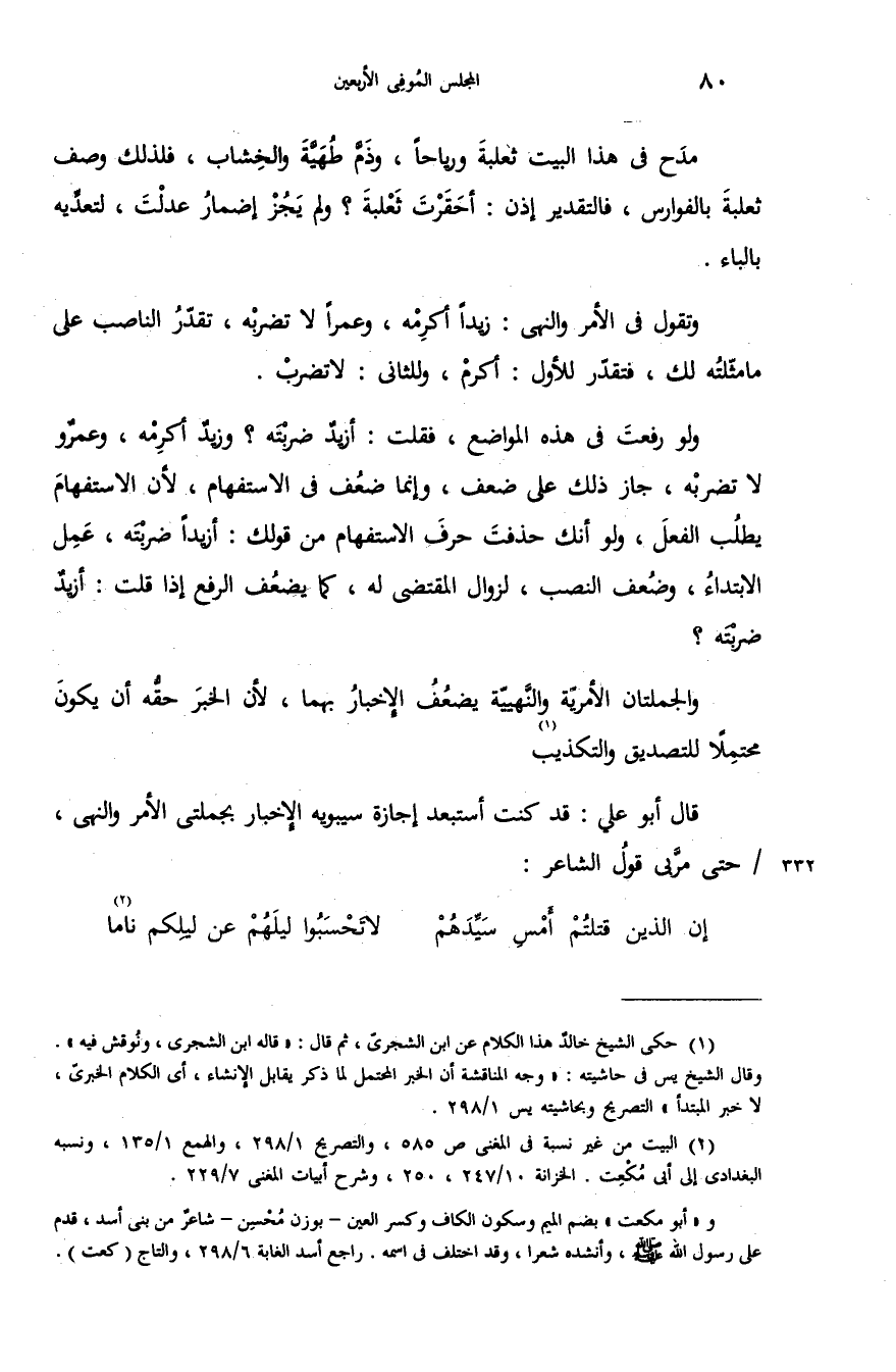 وتقول فى الأمر والنهى: زيدا أكرمه، وعمرا لا تضربه، تقدّر الناصب على ما مثّلته لك، فتقدّر للأول: أكرم، وللثانى: لا تضرب.