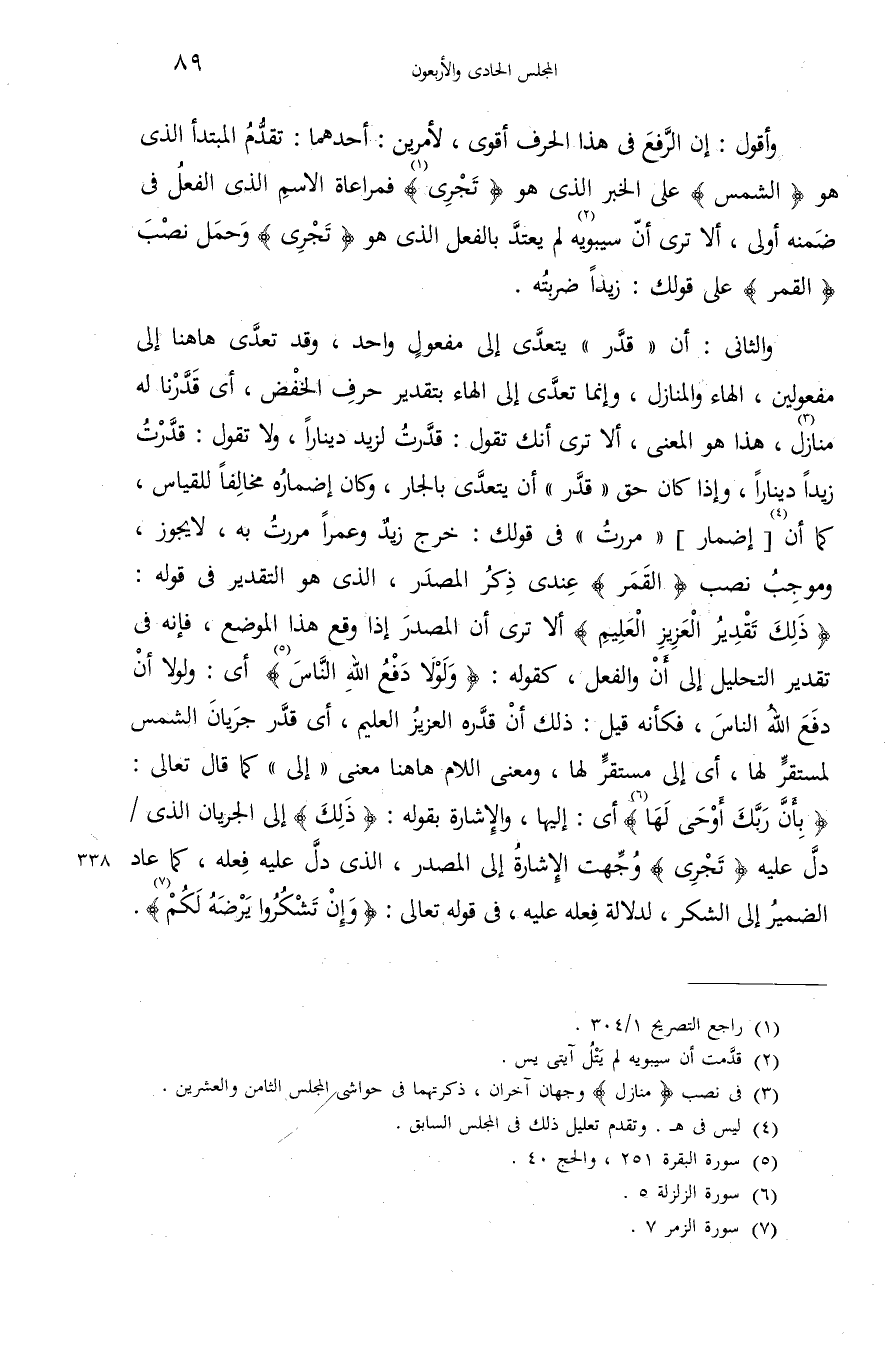 (¬3) فى نصب مَنازِلَ وجهان آخران، ذكرتهما فى حواشى المجلس الثامن والعشرين.
