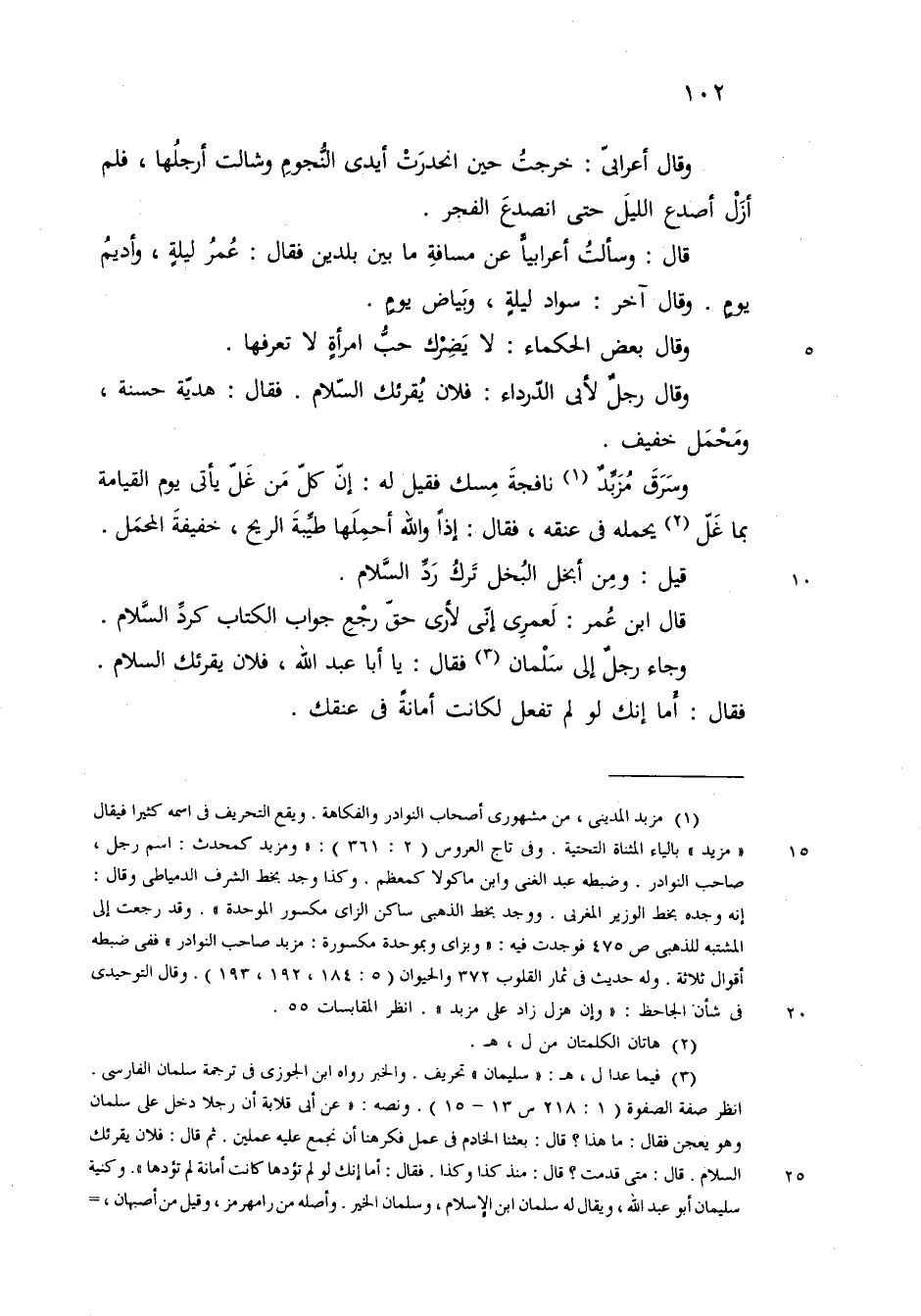وجاء رجل الى سليمان فقال يا أبا عبدالله فلان يقرأ عليك السلام فقال أما إنك لو لم تفعل لكانت أمانة في عنقك@