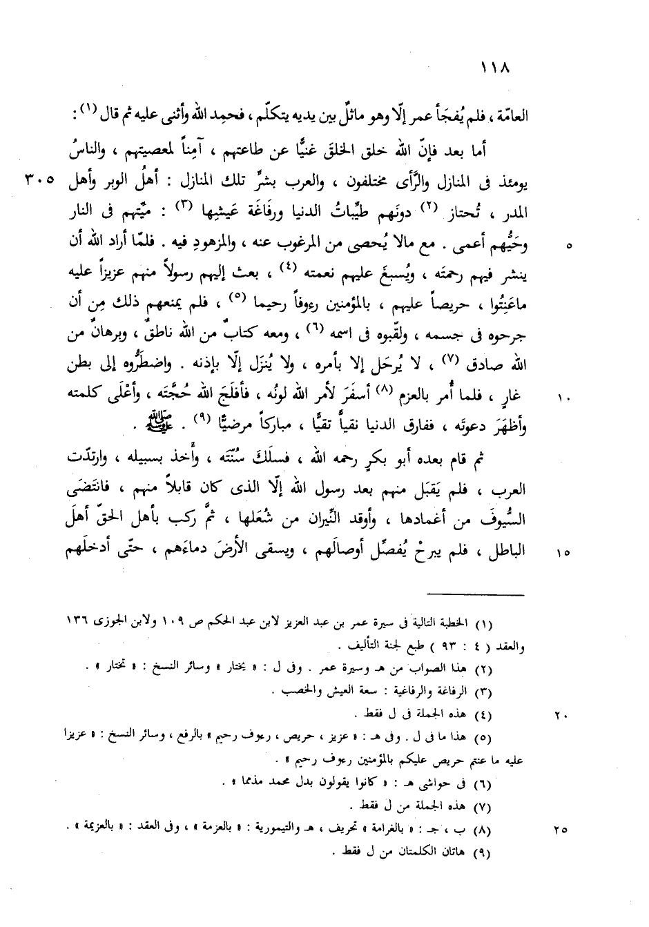 العامة فلم يفجأ عمر الا وهو ماثل بين يديه يتكلم فحمدالله وأثنى عليه ثم قال