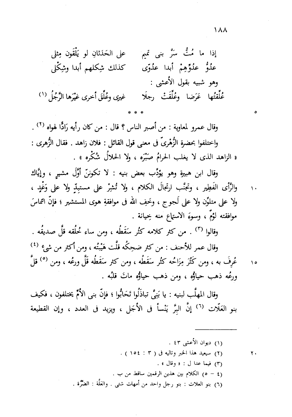 واختلفوا بحضرة الزهري في معنى قول القبائل فلان زاهد فقال الزهري الزاهد الذي لا يغلب الحرام صبره ولا الحلال شكره