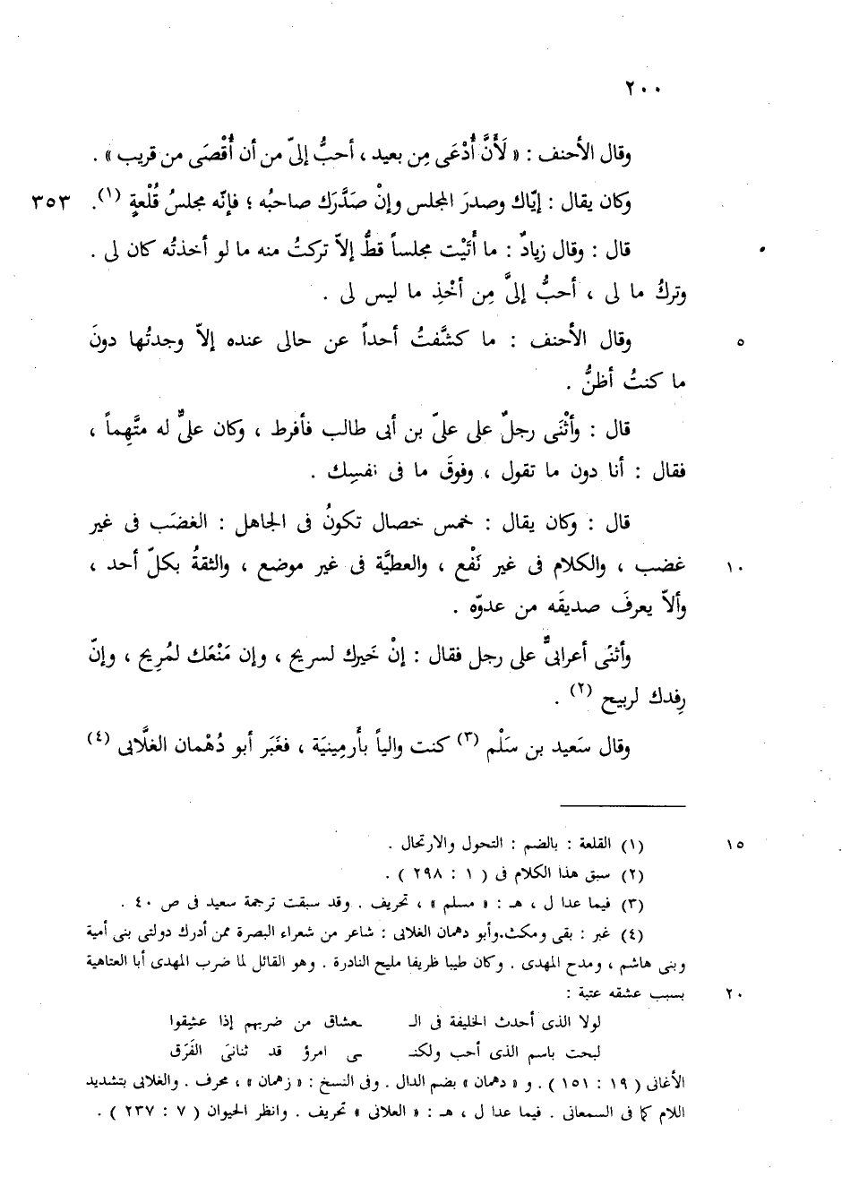 وقال الاحنف لان ادعى من بعيد احب الي من ان اقصى من قريب وكان يقول إياك وصدر المجلس وان صدرك صاحبه فانه مجلس قلعة