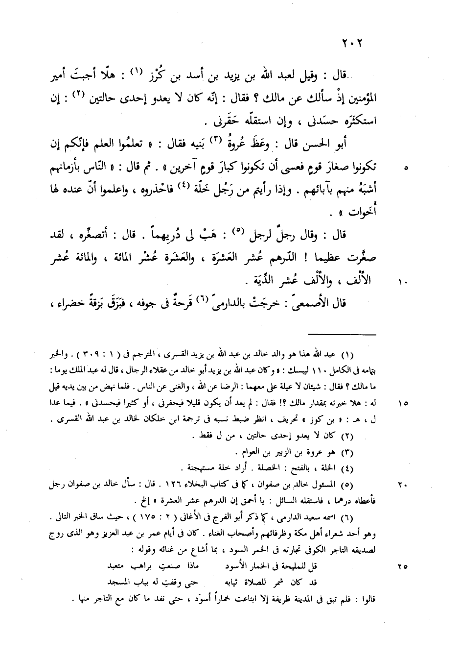 وقيل لعبد الله بن يزيد بن أسد بن كرز هلا أحببت امير المؤمنين اذ سألك عن مالك قال انه ان استكثره حسدني وان استقله حقرني