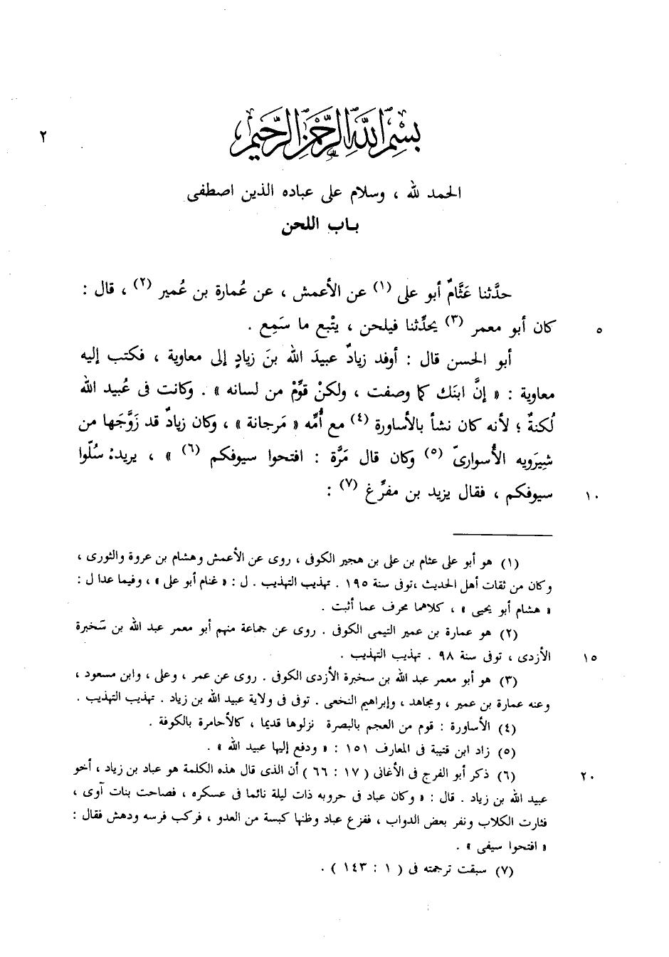 قال ابو الحسن أوفد زياد عبيد الله بن زياد الى معاوية فكتب اليه معاوية ان ابنمك كماوصفت ولكن قوم من لسانه وكانت في عبيد الله لكنه لانه كان نشأ بالأساورة مع امه مرجانة وكان زياد تزوجها من شيرويه الاسواري وكان قال مرة افتحوا سيوفتكم يريد سلوا سيوفكم فقال يزيد بن مفرغ@