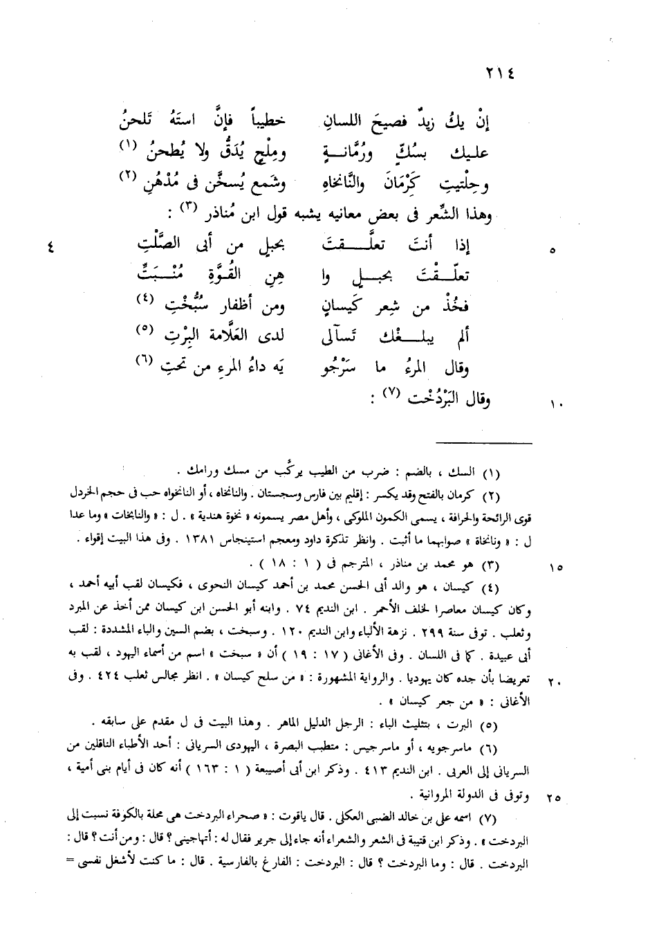( وان يك زيد فصيح اللسان ... خطيبا فان استه تلحن )