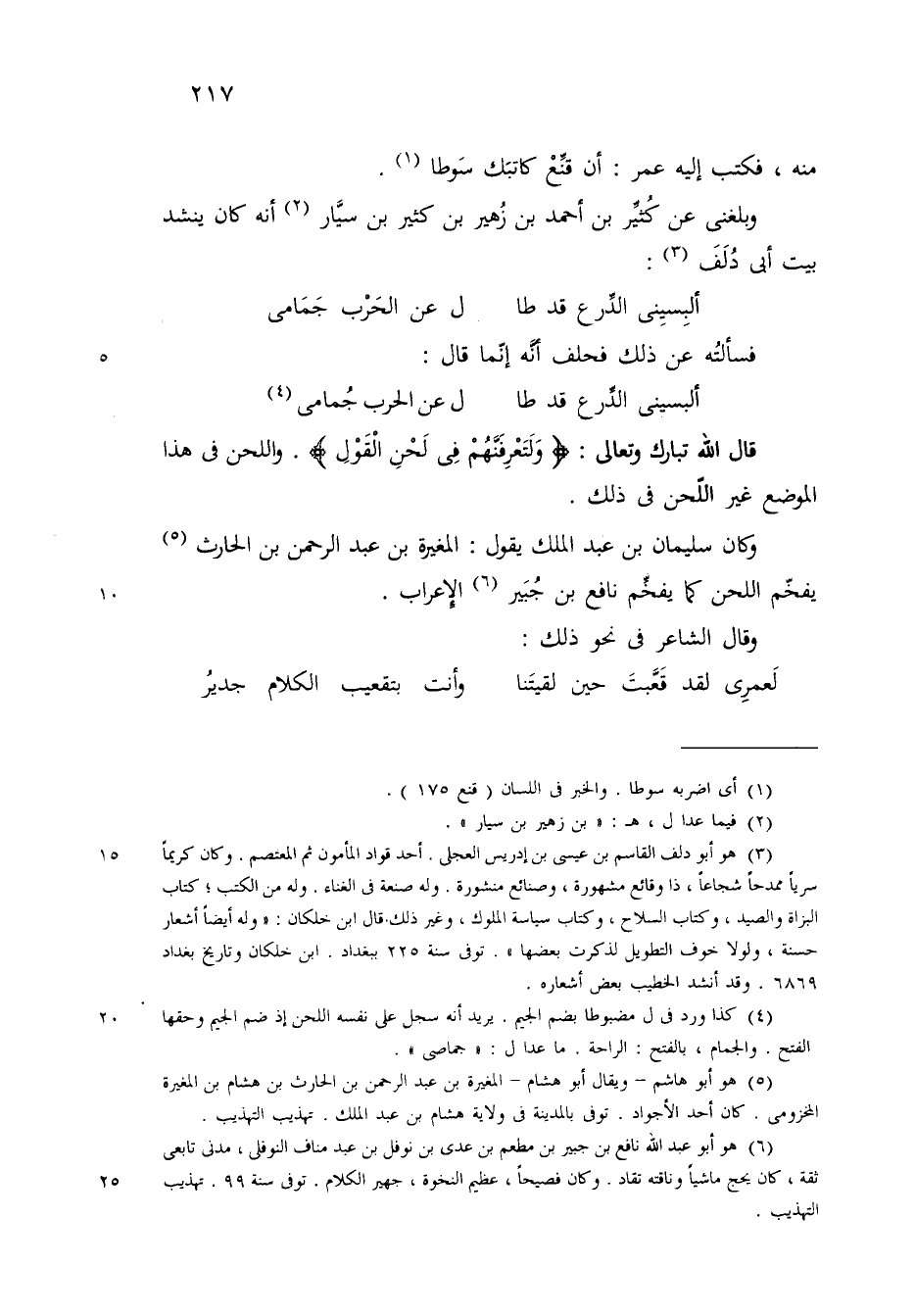 قال الله تبارك وتعالى ( ولتعرفنهم في لحن القول ) فاللحن في ذلك الموضع غير اللحن في ذلك الموضع