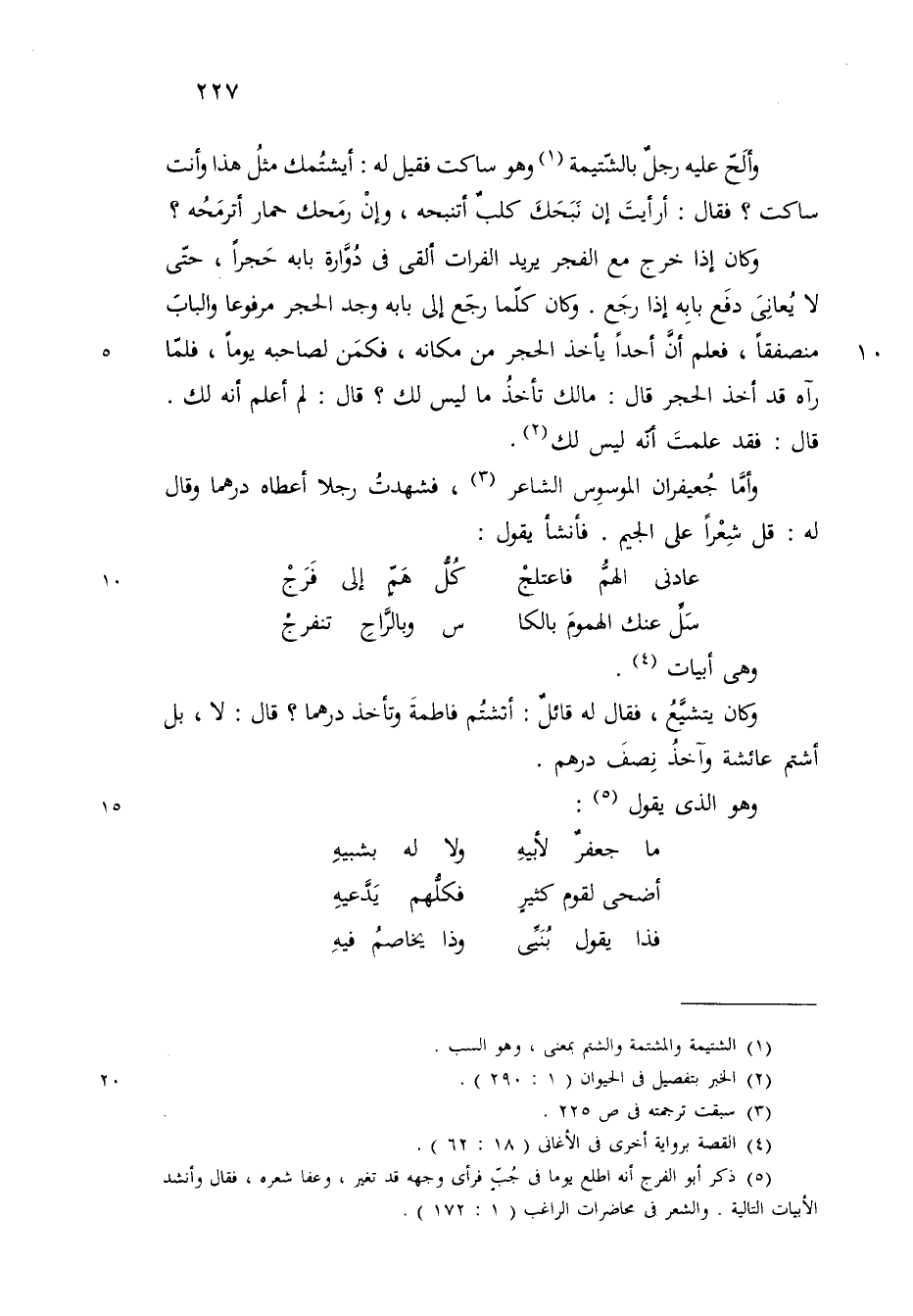أما جعيفران الموسوس الشاعر فشهدت رجلا اعطاه درهما وقال قل