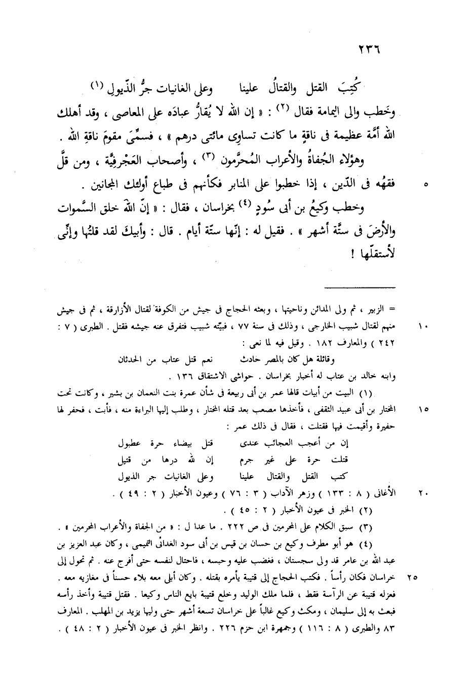 وخطب وكيع بن أبي سود بخراسان فقال ان الله خلق السموات والارض في ستة أشهر فقيل له انها ستة أيام قال وأبيك لقد قلتها وأني لاستقلها@