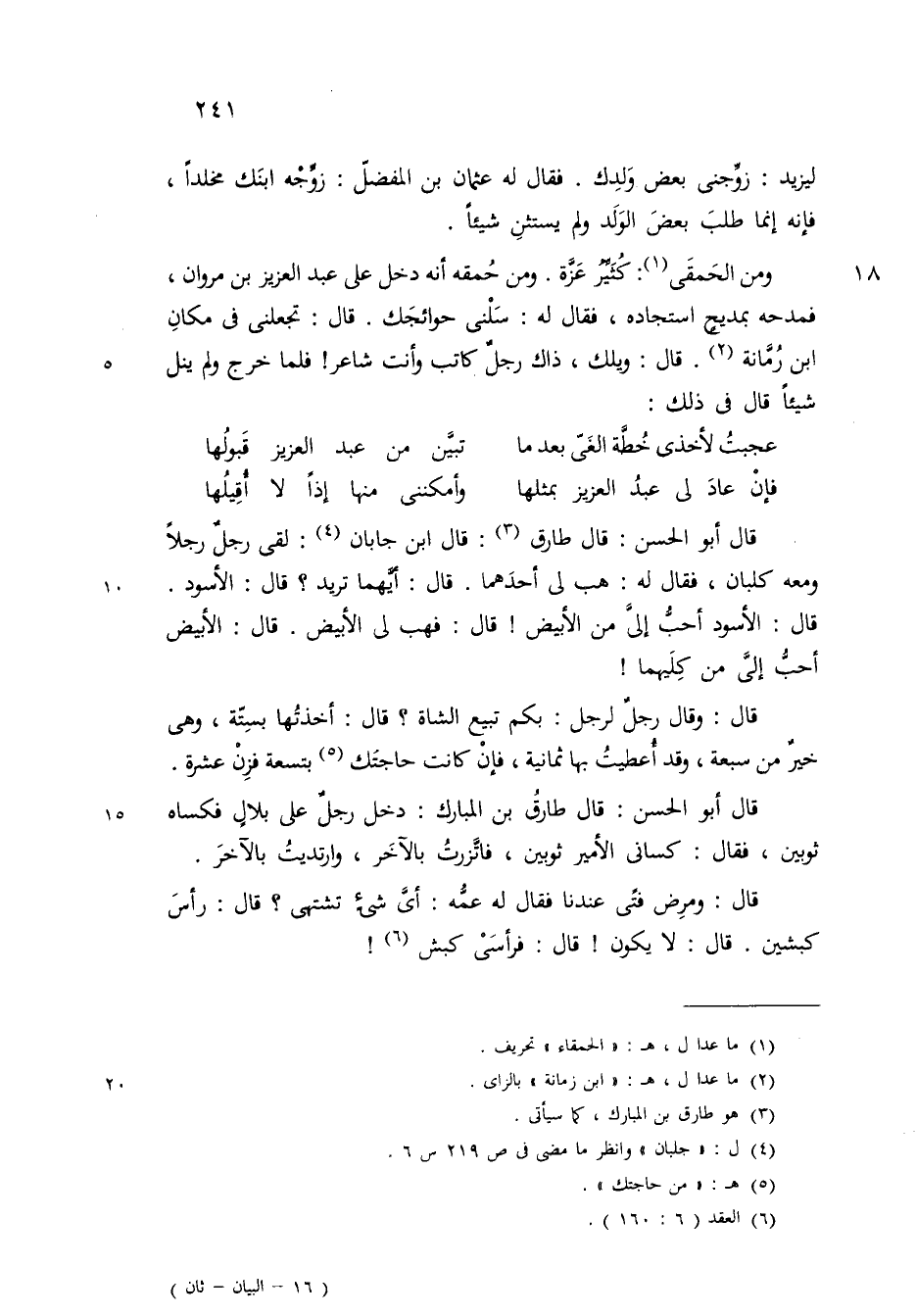 قال ابوالحسن قال طارق قال ابن جابان لقي رجل رجلا ومعه كلبان فقال هب لي احدهما قال أيهما تريد قال الاسود قال الاسود أحب الي من الابيض قال فهب لي الابيض قال الابيض أحب الي من كليهما