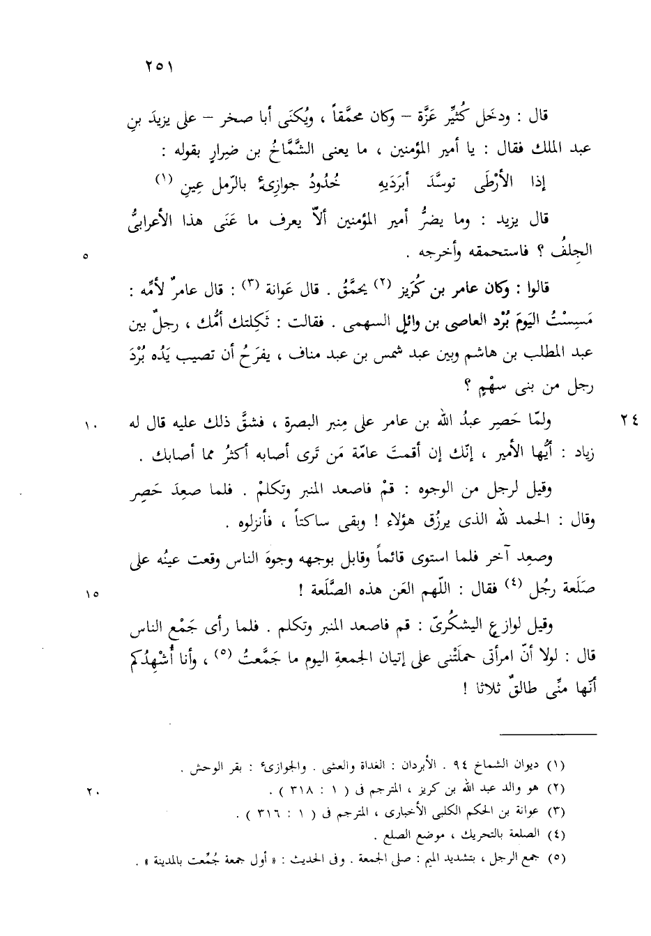قال يزيد وما يضر أمير المؤمنين ان لا يعرف ماعنى هذا الاعرابي الجلف واستحمقه وأخرجه