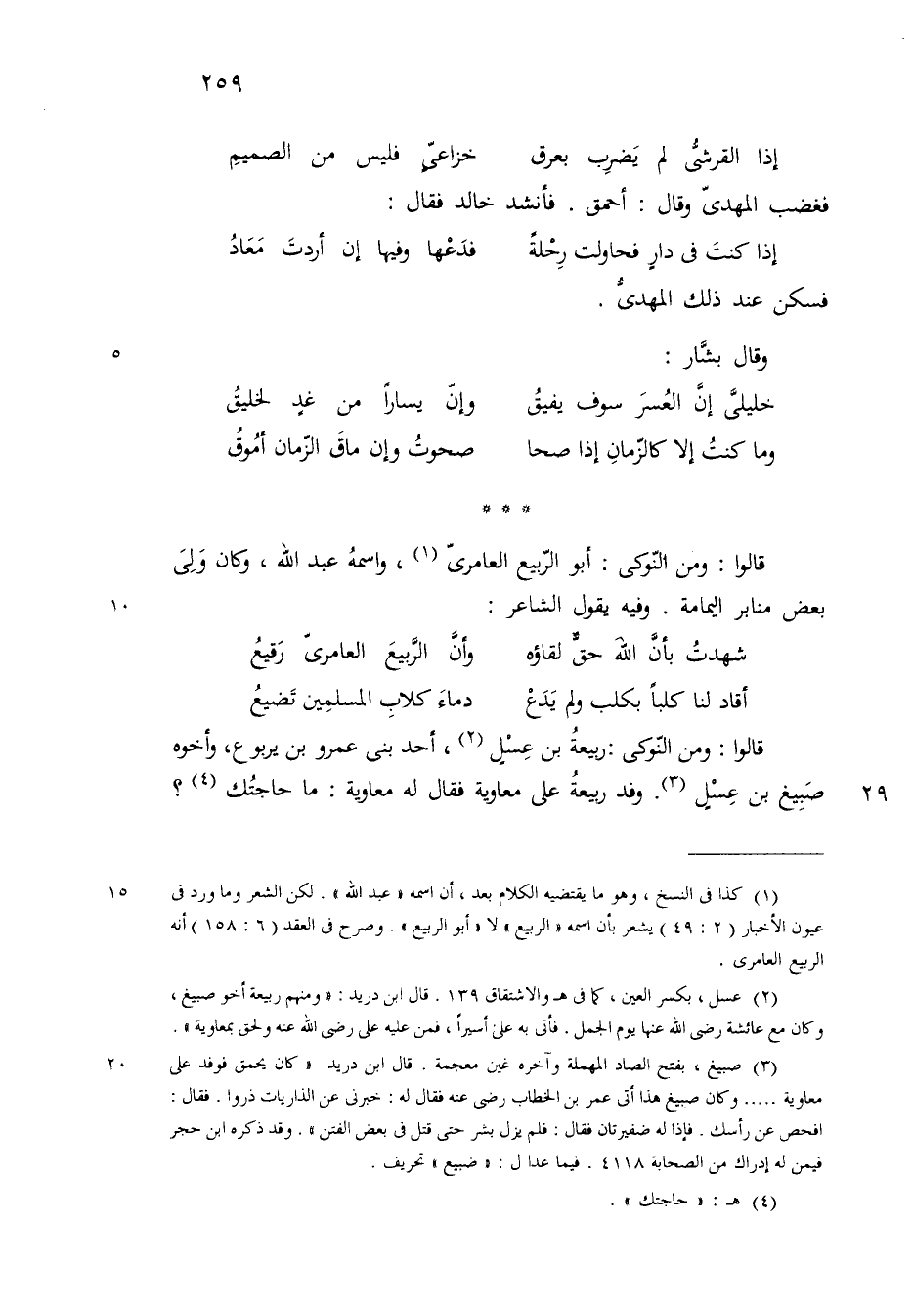 قالوا ومن النوكى ربيعة بن عسل احد بني عمرو بن يربوع وأخوه ضبيع بن عسل وفد ربيعة على معاوية فقال معاوية حاجتك@