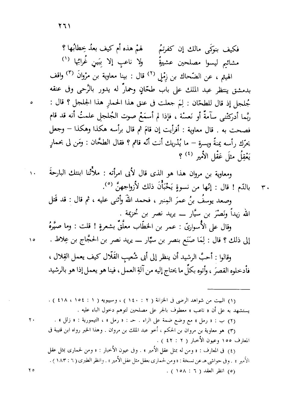 قال الهيثم عن الضحاك بن رمل بينا معاوية بن مروان واقف بدمشق ينتظر عبد الملك على باب طحان وحمار له يدور بالرحى في عنقه جلجل اذ قال للطحان لم جعلت في عنق هذا الحمار هذا الجلجل قال ربما أدركتني سآمة او نعسة فاذا لم أسمع صوت الجلجل علمت انه قد قام فصحت به قال معاوية أفرأيت ان قام ثم قال برأسه هكذا هكذا وجعل يحرك رأسه يمنة ويسرة