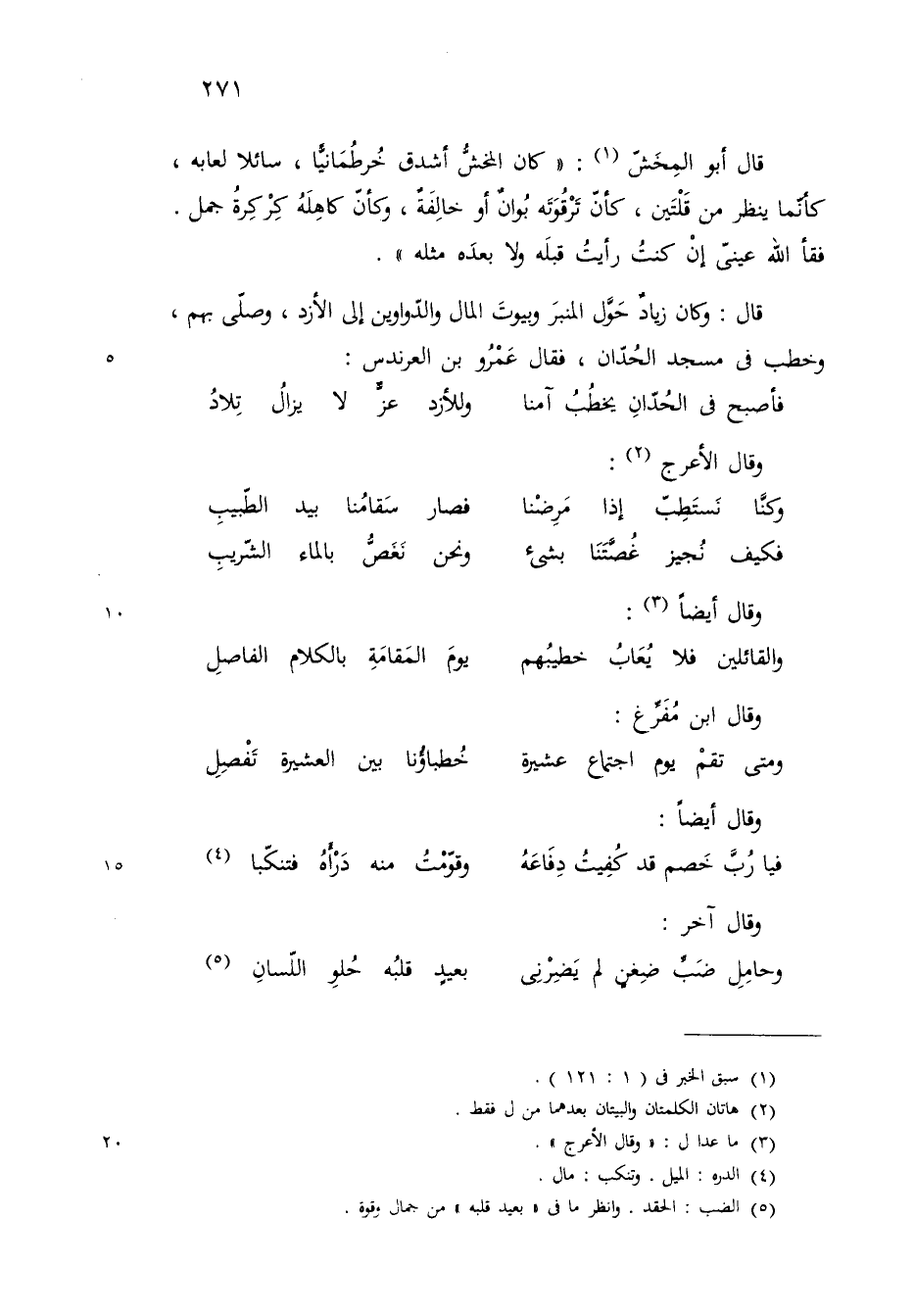وكان زياد حول المنبر وبيوت الاموال والدواوين الى الازد وصلى بهم وخطب في مسجد حدان فقال عمرو بن العرندس