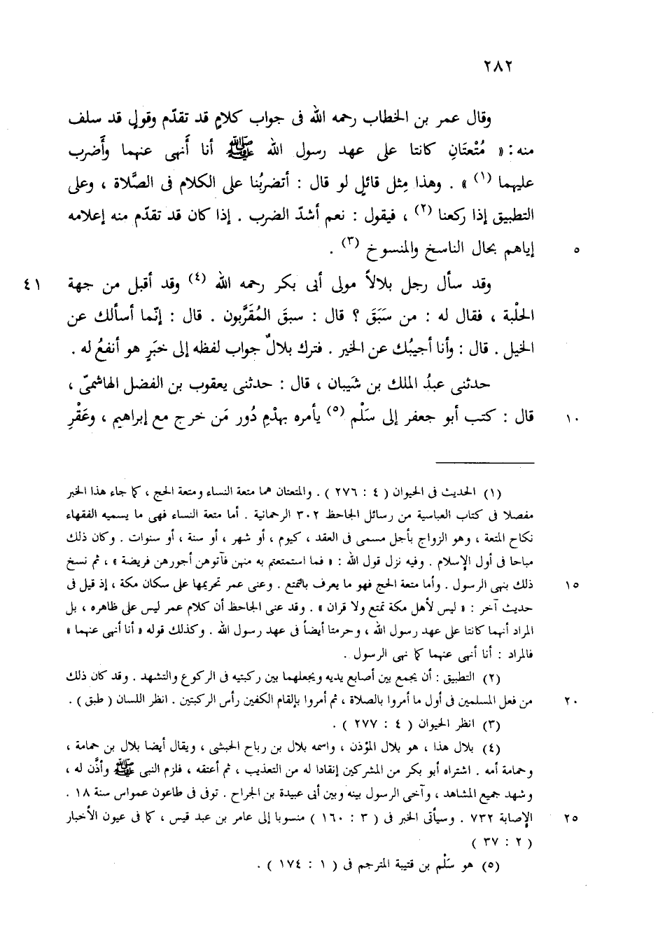 وقال عمر رضي الله تعالى عنه في جواب كلام قد تقدم وقول قد سلف منه متعتان كانتا على عهد رسول الله أنا أنهى عنهما وأضرب عليهما وهذا مثل قائل لو قال أتضربنا على الكلام في الصلاة وعلى التطبيق اذا ركعنا فيقول نعم أشد الضرب اذا كان قد تقدم منه إعلامه إياهم بحال الناسخ والمنسوخ