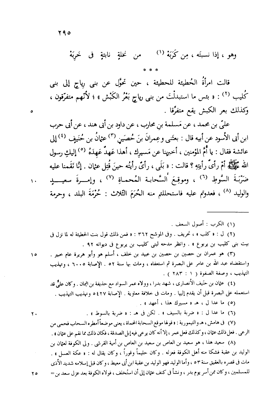 قالت امراة الحطيئة للحطيئة حين تحول عن بني رياح الى بني كليب بئس ما استبدلت من بني رياح بعر الكبش لأنهم متفرقون وكذلك بعر الكبش يقع متفرقا