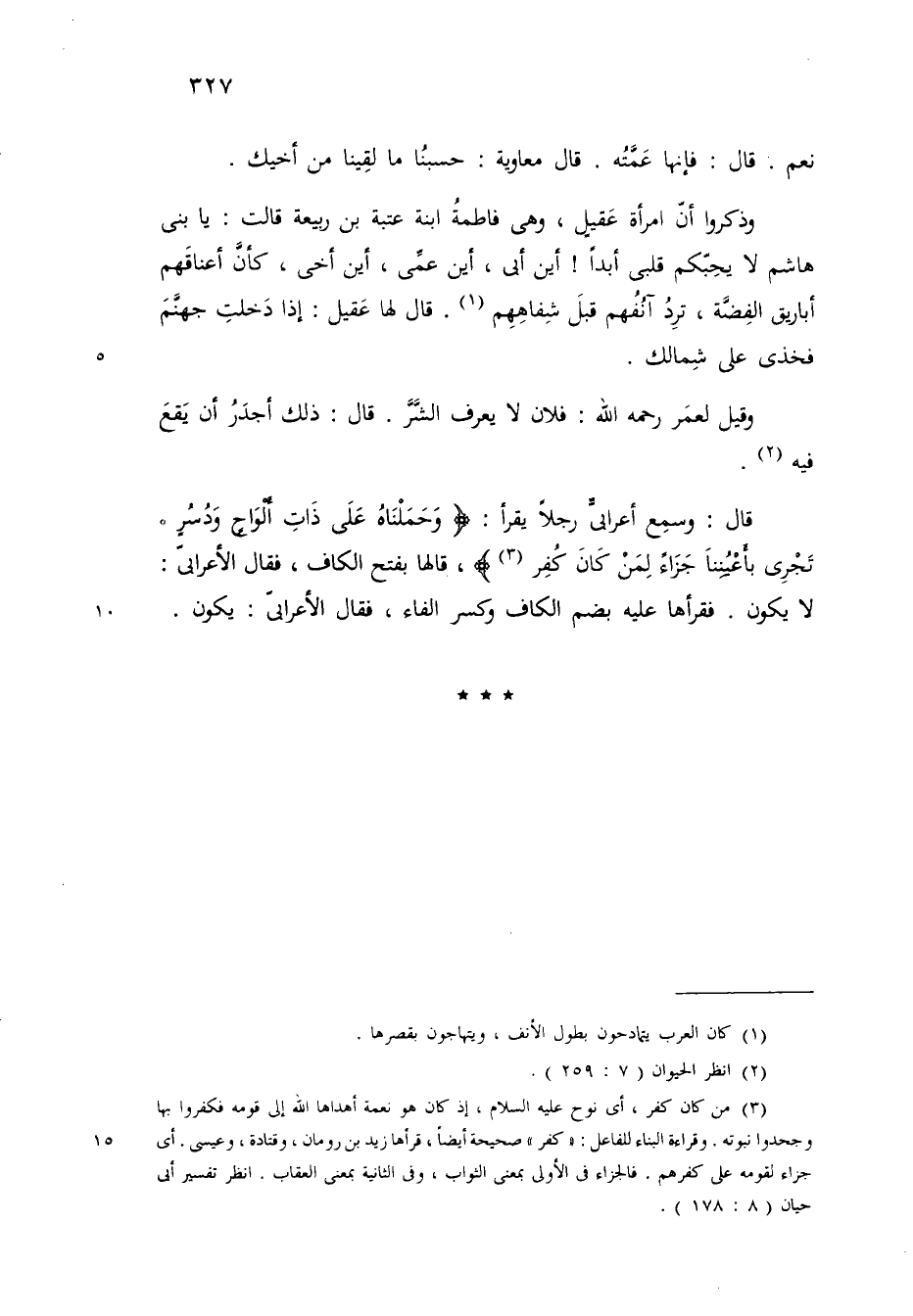 وقيل لعمر رضي الله تعالى عنه فلان لا يعرف الشر قال ذلك أجدر ان يقع فيه وسمع أعرابي رجلا يقرأ وحملناه على ذات ألواح ودسر تجري فأعيننا جزاء لمن كان كفر قالها بفتح الكاف فقال الاعرابي لا يكون فقرأها عليه بضم الكاف وكسر الفاء فقال الاعرابي يكون@