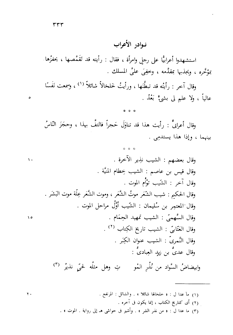 ( وابيضاض السواد من نذر الشر ... وهل مثله لحي نذير )@