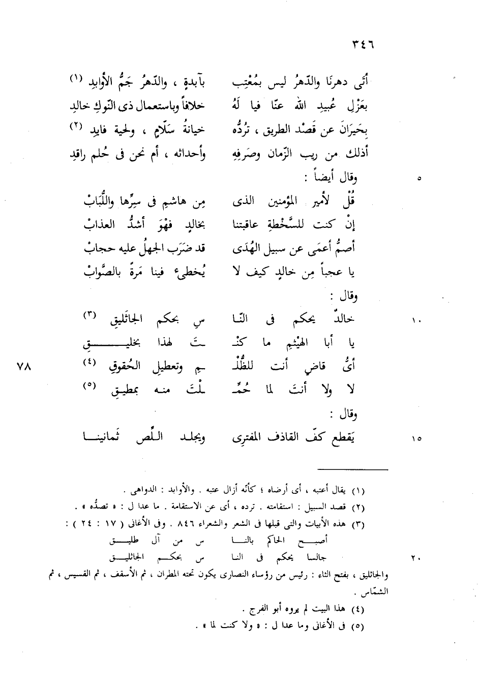 ( يا عجبا من خالد كيف لا ... يخطيء فينا مرة بالصواب )
