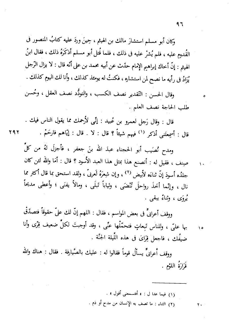 قال رجل لعمرو بن عبيد إني لأرحمك مما يقول الناس فيك قال أفتسمعني اقول فيهم شيئا قال لا قال إياهم فارحم