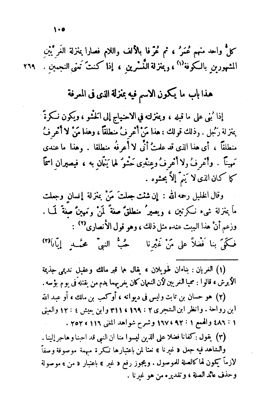 إذا بُني على ما قبله، وبمنزلته في الاحتياج إلى الحشو، ويكون نكرة بمنزلة رجل. وذلك قولك: هذا مَن أعرف منطلقا، وهذا مَن لا أعرف منطلقا، أي هذا الذي علمتُ أني لا أعرفه منطلقا. وهذا ما عندي مَهيناً، وأعرف ولا أعرف وعندي حشوٌ لهما يتمان به، فيصيران اسما كما كان الذي لا يتم إلا بحشوه.