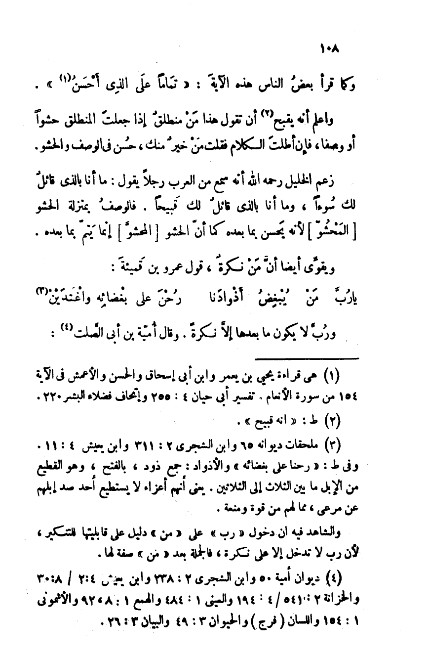 واعلم أنه يقبح أن تقول هذا مَن منطلق إذا جعلتَ المنطلق حشوا أو وصفا، فإن أطلتَ الكلام فقلت مَن خيرٌ منك، حسُن في الوصف والحشو.