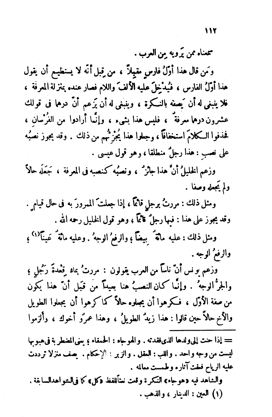 ومثل ذلك: عليه مائةٌ بيضا؛ والرفعُ الوجهُ. وعليه مائةٌ عينا؛ والرفعُ الوجه.